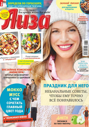 Самый популярный в России еженедельный журнал для молодых женщин «Лиза» стал еще интереснее, еще привлекательнее для читательниц. Теперь больше знаменитостей на страницах любимого журнала! Фитнес со звездой и звездный макияж, уроки стиля и самые горячие новости из жизни кумиров. А еще — модный шопинг, актуальная мода, новинки косметики и великолепные идеи для дома. Романтические истории о настоящей любви и рассказы читательниц о разных жизненных ситуациях. Аспекты психологии, секреты успешных отношений с окружающими и искусство сохранения любви.