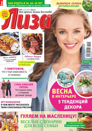 Самый популярный в России еженедельный журнал для молодых женщин «Лиза» стал еще интереснее, еще привлекательнее для читательниц. Теперь больше знаменитостей на страницах любимого журнала! Фитнес со звездой и звездный макияж, уроки стиля и самые горячие новости из жизни кумиров. А еще — модный шопинг, актуальная мода, новинки косметики и великолепные идеи для дома. Романтические истории о настоящей любви и рассказы читательниц о разных жизненных ситуациях. Аспекты психологии, секреты успешных отношений с окружающими и искусство сохранения любви.