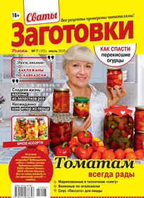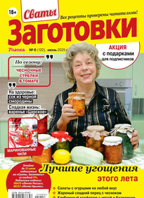 Более 100 рецептов заготовок от Сватов в каждом номере: соленья и маринады, салаты и ассорти, соусы и приправы, заготовки к сезону, сладкие заготовки, напитки, винный погребок, мясные деликатесы, здоровые рецепты, целебные заготовки, дачные хлопоты, правила хранения, а также кроссворды и сканворды для досуга. Лучшими рецептами поделятся с вами сваты Любовь Сергеевна и Михаил Михайлович.