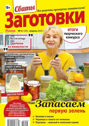 Более 100 рецептов заготовок от Сватов в каждом номере: соленья и маринады, салаты и ассорти, соусы и приправы, заготовки к сезону, сладкие заготовки, напитки, винный погребок, мясные деликатесы, здоровые рецепты, целебные заготовки, дачные хлопоты, правила хранения, а также кроссворды и сканворды для досуга. Лучшими рецептами поделятся с вами сваты Любовь Сергеевна и Михаил Михайлович.