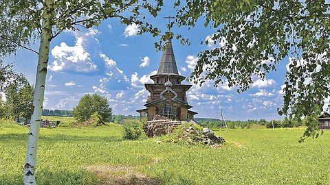 С краю - деревенский храм, похожий то ли на дом отшельника, то ли древнюю крестьянскую церквушку. Видно, что сооружали всем миром, с душой, не на казенные - на свои. Он словно вшит в деревню, словно был здесь всегда, и вот-вот выплывут из-за него бабы с ведрами или высыпется стая чумазых деток...