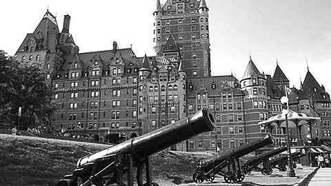 Взгляните на линейку старинных орудий на английских чугунных станках – они эффектно смотрятся на фоне Шато Фронтнак, если не самого красивого, то самого фотографируемого отеля в мире! Это в нем проходила Квебекская конференция 1943 года, когда Черчилль и Рузвельт договорились о тесном сотрудничестве в атомном проекте.